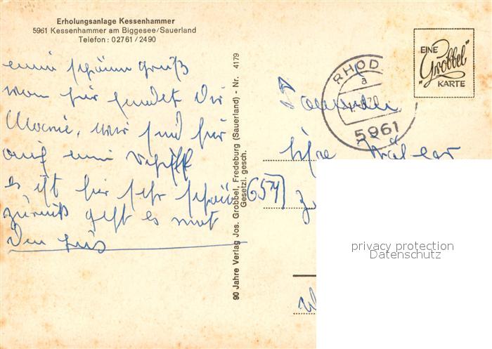 73721739 alte Postkarte Kessenhammer Erholungsanlage Kessenhammer am Biggesee Terrasse Gastraeume postalisch gelaufen Erhaltung siehe scans [WerneD78] KatCode: 11110005966024
