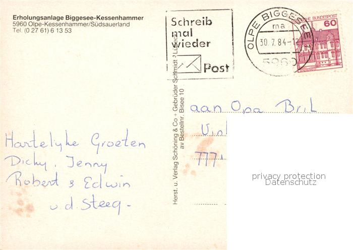 73048397 alte Postkarte Kessenhammer Erholungsanlage Schwimmbad Biggesee postalisch gelaufen Erhaltung siehe scans [KathaD81] KatCode: 11110005966024