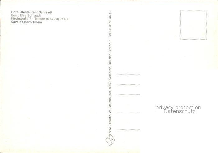 72495831 Kestert Rhein Hotel Restaurant Schlaadt postalisch nicht gelaufen Erhaltung siehe scans KatCode: 11110007141072