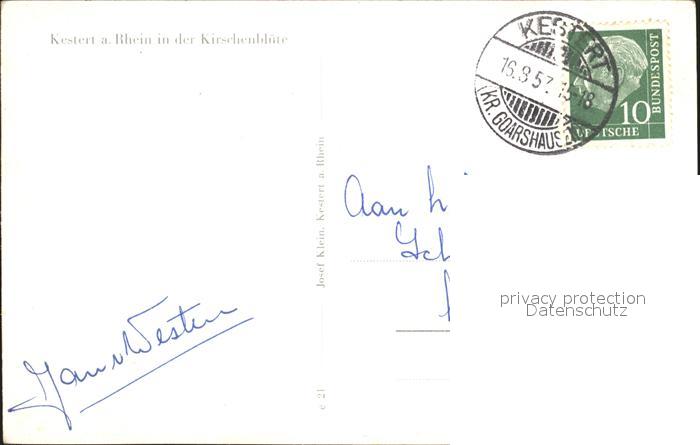 71940799 alte Postkarte Kestert Rhein in der Kirschenbluete Panorama postalisch gelaufen Erhaltung siehe scans KatCode: 11110007141072