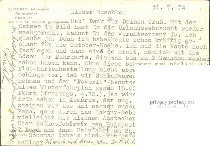 Keszthely Halaszcsarda Fischerschenke Restaurant postalisch nicht gelaufen Erhaltung siehe scans