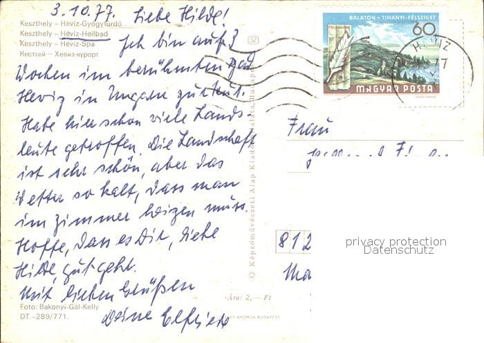 old postcard Keszthely Heviz-Gyogytuerdoe postalisch gelaufen Erhaltung siehe scans