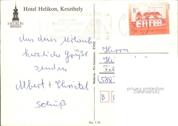 old postcard Keszthely Hotel Helikon Schwimmbad postalisch gelaufen Erhaltung siehe scans