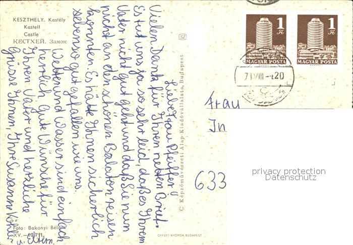 old postcard Keszthely Kastely Schloss postalisch gelaufen Erhaltung siehe scans