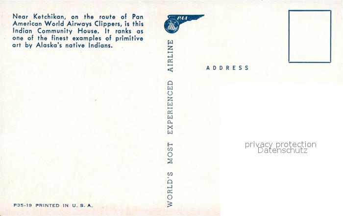 72944058 Ketchikan Alaska Indian Community House postalisch nicht gelaufen Erhaltung siehe scans [WerneD78] KatCode: 14140020000000