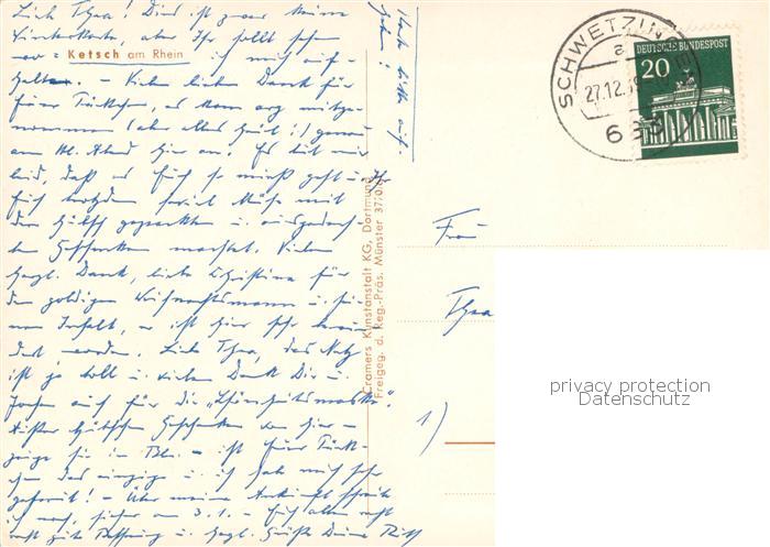 73774823 alte Postkarte Ketsch Rhein Fliegeraufnahme postalisch gelaufen Erhaltung siehe scans [WerneD78] KatCode: 11110008226037