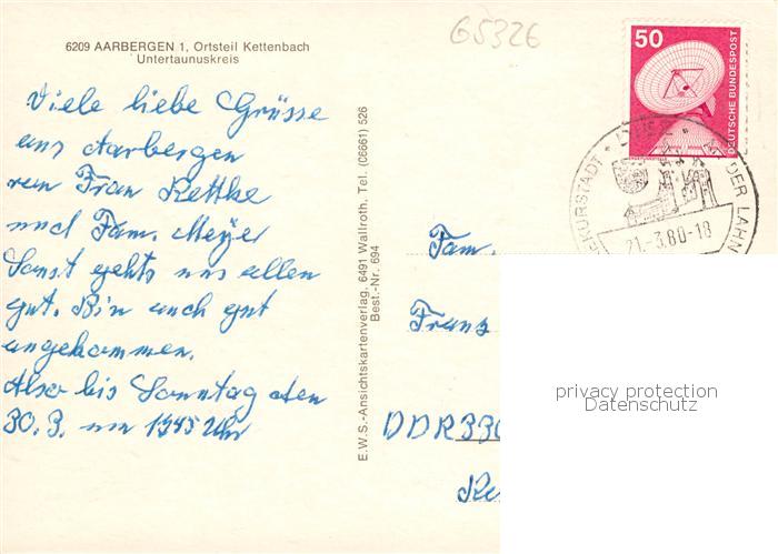 73855344 alte Postkarte Kettenbach Taunus Teilansicht mit Tennisplatz Buergerhaus Kirche Schule postalisch gelaufen Erhaltung siehe scans [FriedD77] KatCode: 11110006439001