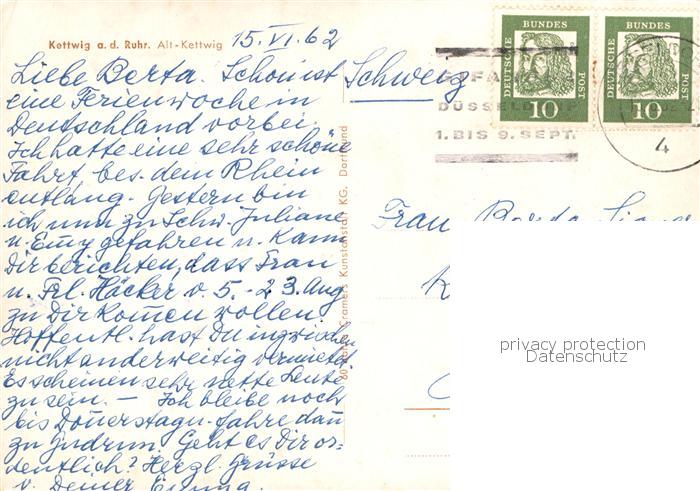 73834240 alte Postkarte Kettwig Ansicht von Alt Kettwig postalisch gelaufen Erhaltung siehe scans [WerneD78] KatCode: 11110005113000
