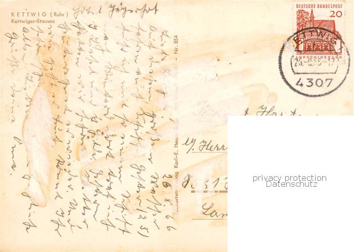 73813047 alte Postkarte Kettwig Blick ueber den Stausee postalisch gelaufen Erhaltung siehe scans [FriedD77] KatCode: 11110005113000