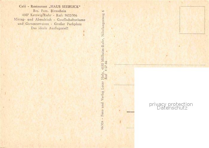 72636128 Kettwig Cafe Restaurant Haus Seeblick Gartenterrasse Panorama postalisch nicht gelaufen Erhaltung siehe scans [WerneD78] KatCode: 11110005113000