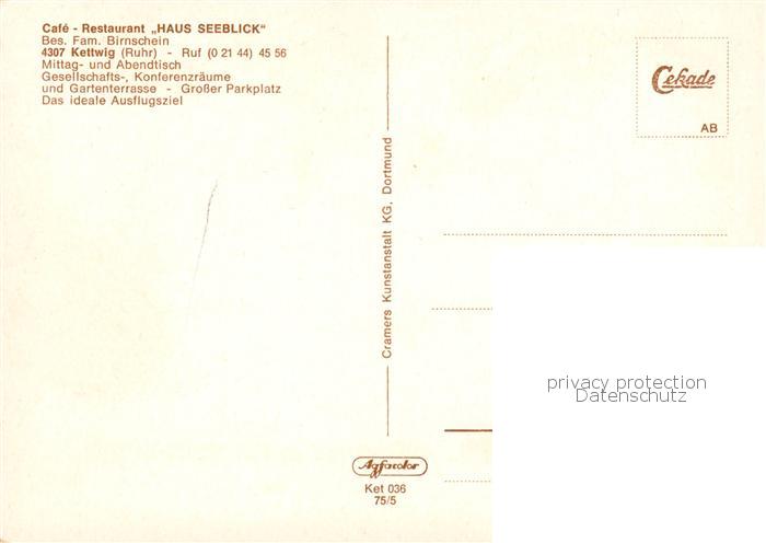 73865346 Kettwig Cafe Restaurant Haus Seeblick Ruhrpartie Gastraeume postalisch nicht gelaufen Erhaltung siehe scans [WerneD78] KatCode: 11110005113000