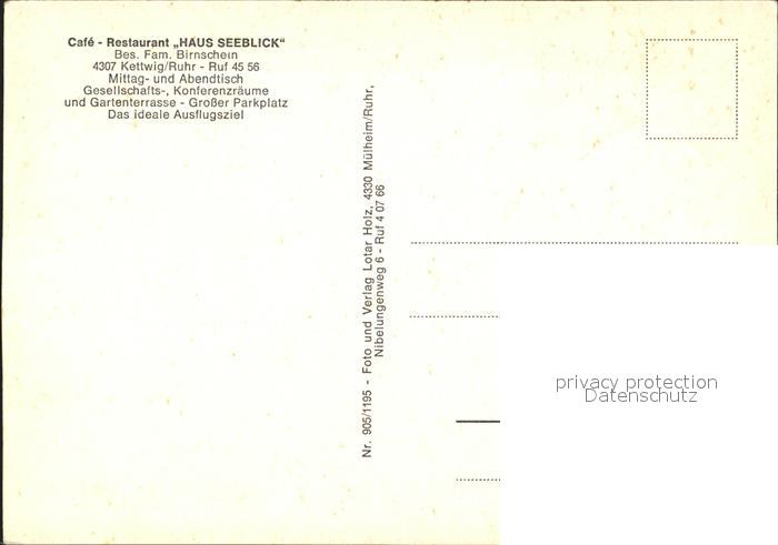 72287847 Kettwig Cafe Restaurant Haus Seeblick Terrassse Ruhr postalisch nicht gelaufen Erhaltung siehe scans KatCode: 11110005113000