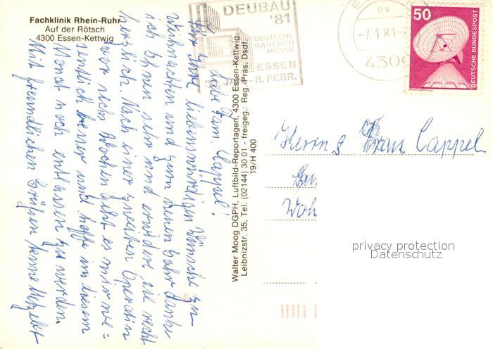 73128353 alte Postkarte Kettwig Fachklinik Rhein-Ruhr Fliegeraufnahme postalisch gelaufen Erhaltung siehe scans [PaolaD17] KatCode: 11110005113000