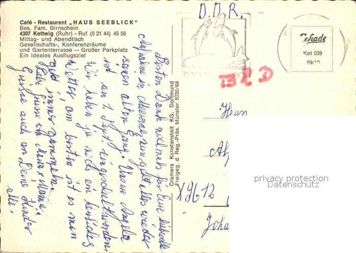 72005357 alte Postkarte Kettwig Fliegeraufnahme Cafe Restaurant Haus Seeblick Ruhr postalisch gelaufen Erhaltung siehe scans KatCode: 11110005113000