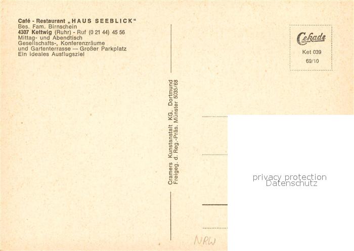 73616096 Kettwig Fliegeraufnahme mit Cafe Restaurant Haus Seeblick postalisch nicht gelaufen Erhaltung siehe scans [WerneD78] KatCode: 11110005113000