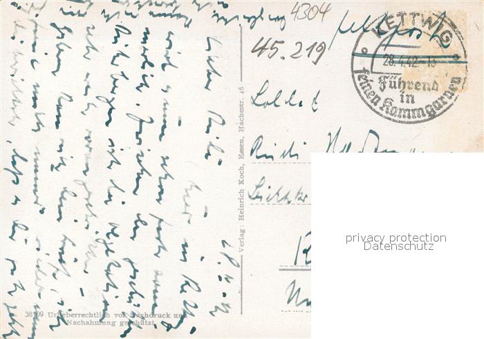 73702526 alte Postkarte Kettwig Ruhrpartie Bootsanlegestelle Ruhrbruecken Alt-Kettwig Muetter-Erholungsheim Maerchen-Brunnen Schloss-Hugenpoet Feldpost postalisch gelaufen Erhaltung siehe scans [LiesaD40] KatCode: 11110005113000