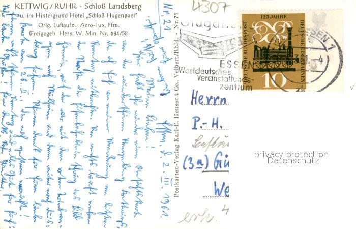 73692826 alte Postkarte Kettwig Schloss Landsberg postalisch gelaufen Fliegeraufnahme Erhaltung siehe scans [FriedD77] KatCode: 11110005113000