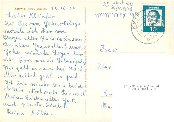 73777842 alte Postkarte Kettwig Stausee Panorama postalisch gelaufen Erhaltung siehe scans [WerneD78] KatCode: 11110005113000