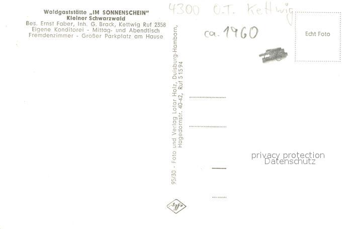73701983 Kettwig Waldgaststaette Im Sonnenschein Aussenansicht postalisch nicht gelaufen Erhaltung siehe scans [LiesaD40] KatCode: 11110005113000
