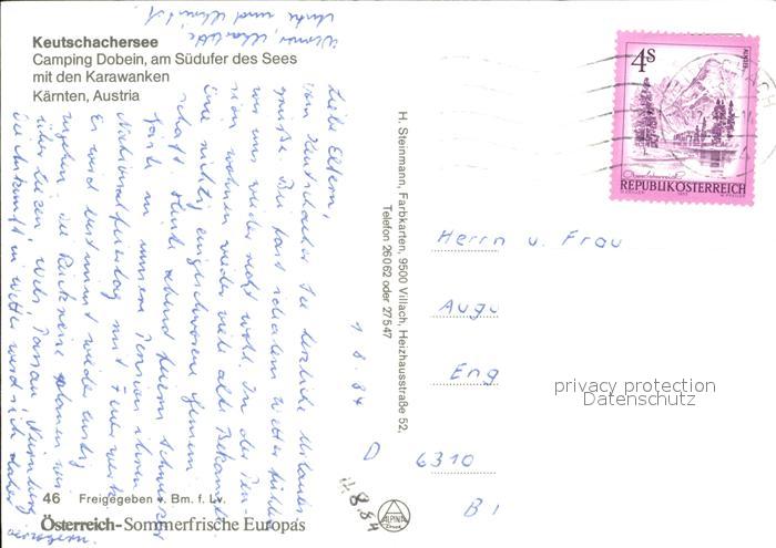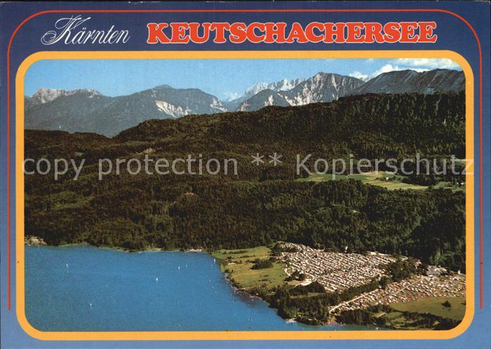 72469924 alte Postkarte Keutschach See Camping Dobein Suedufer des Sees mit Karawanken Fliegeraufnahme postalisch gelaufen Erhaltung siehe scans KatCode: 11390211020412