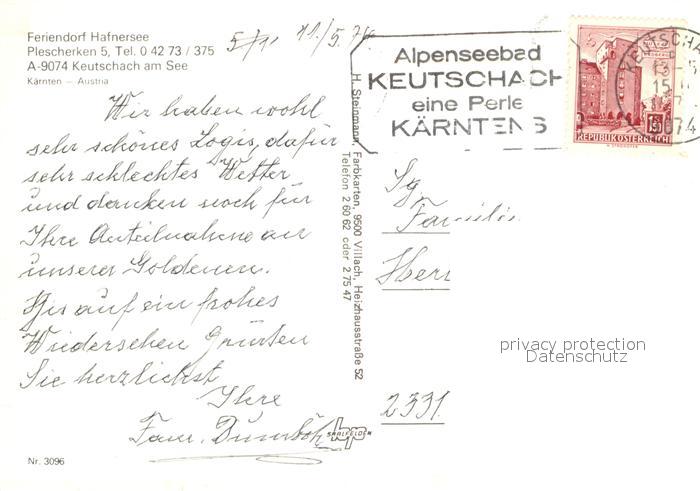 12943344 alte Postkarte Keutschach See Feriendorf Hafnersee Fliegeraufnahme postalisch gelaufen Erhaltung siehe scans [NatalD47] KatCode: 11390211020412