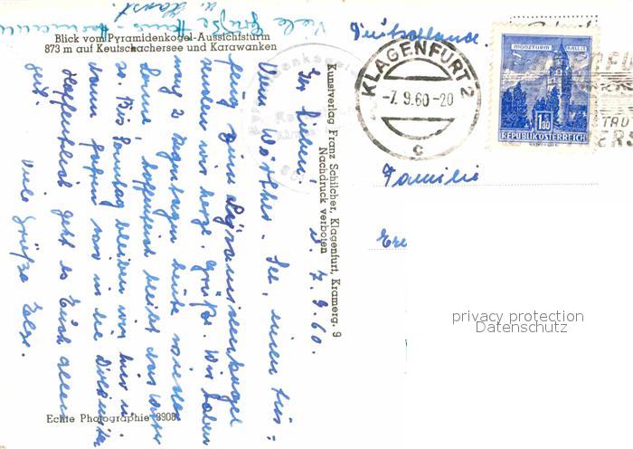 72719162 alte Postkarte Keutschach See Fliegeraufnahme mit Karawanken postalisch gelaufen Erhaltung siehe scans [LiesaD40] KatCode: 11390211020412