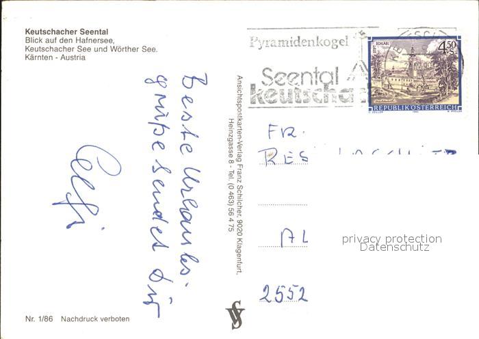72411568 alte Postkarte Keutschach See Hafnersee Keutschacher See und Woerther See Fliegeraufnahme postalisch gelaufen Erhaltung siehe scans KatCode: 11390211020412