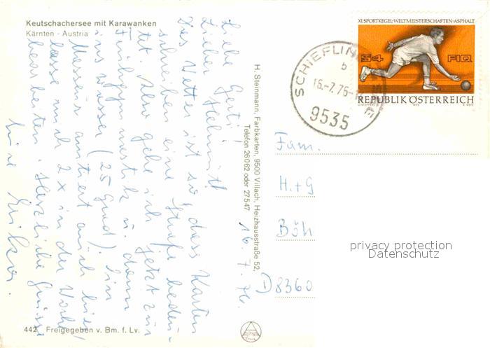 72696893 alte Postkarte Keutschach See Karawanken Luftaufnahme postalisch gelaufen Erhaltung siehe scans [KathaD79] KatCode: 11390211020412