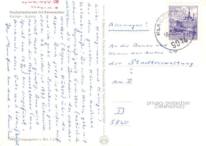 73243132 alte Postkarte Keutschach See Keutschachersee mit Karawanken Fliegeraufnahme postalisch gelaufen Erhaltung siehe scans [FriedD77] KatCode: 11390211020412