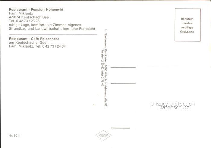 71899689 Keutschach See Pension Hoehenwirt Restaurant Felsennest Wappen Aussichtsturm postalisch nicht gelaufen Erhaltung siehe scans KatCode: 11390211020412