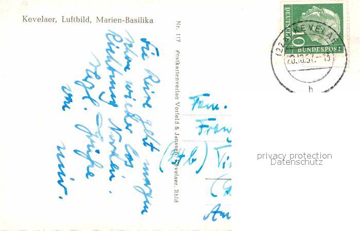72843497 alte Postkarte Kevelaer Fliegeraufnahme Marien Basilika postalisch gelaufen Erhaltung siehe scans [KathaD81] KatCode: 11110005154032
