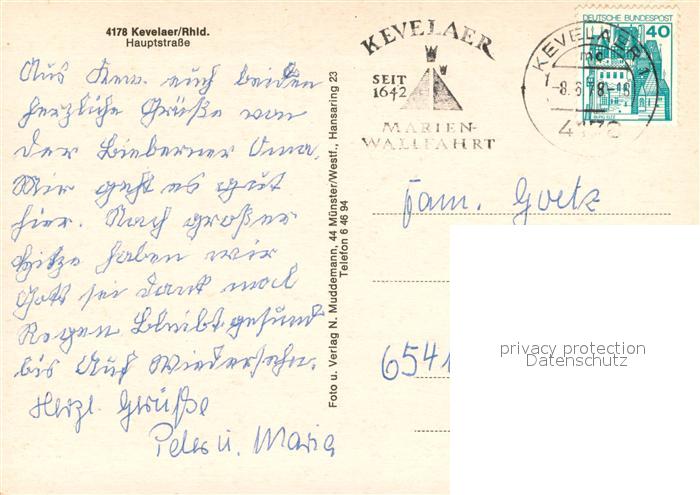 73656090 alte Postkarte Kevelaer Hauptstrasse Fussgaengerzone Innenstadt Kirche postalisch gelaufen Erhaltung siehe scans [FriedD77] KatCode: 11110005154032