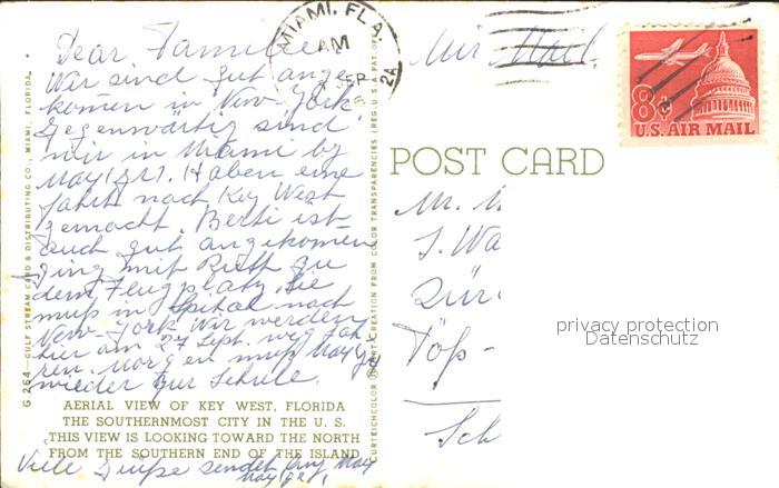 11693802 old postcard Key West Aerial view postalisch gelaufen Erhaltung siehe scans KatCode: 14140110000000