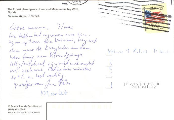 71939391 old postcard Key West Ernest Hemingway Home Museum postalisch gelaufen Erhaltung siehe scans KatCode: 14140110000000