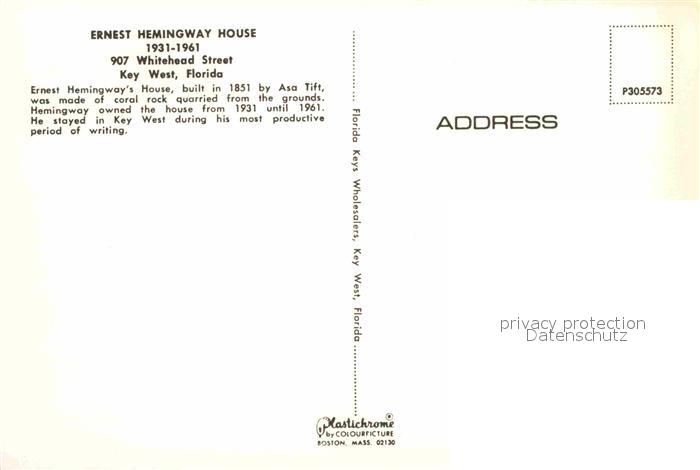 72668931 Key West Ernest Hemingway House postalisch nicht gelaufen Erhaltung siehe scans [LiesaD40] KatCode: 14140110000000