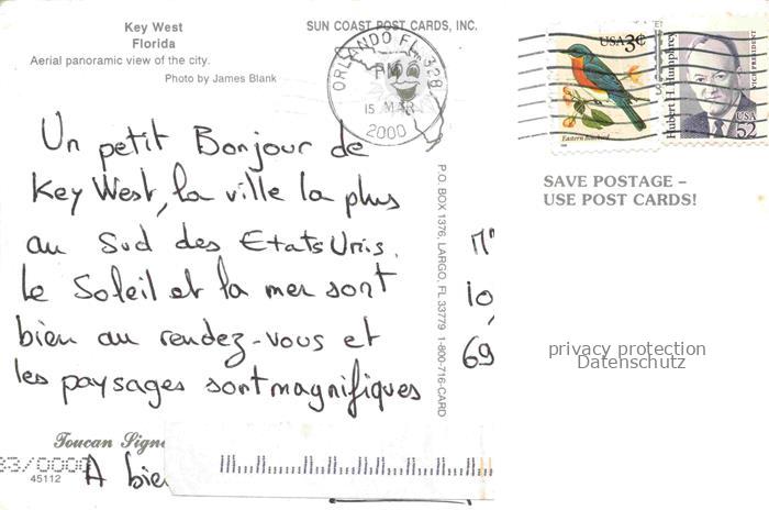 74015107 old postcard Key West Florida USA Aerial panoramic view of the city postalisch gelaufen Fliegeraufnahme Erhaltung siehe scans [FriedD77] KatCode: 14140110000000