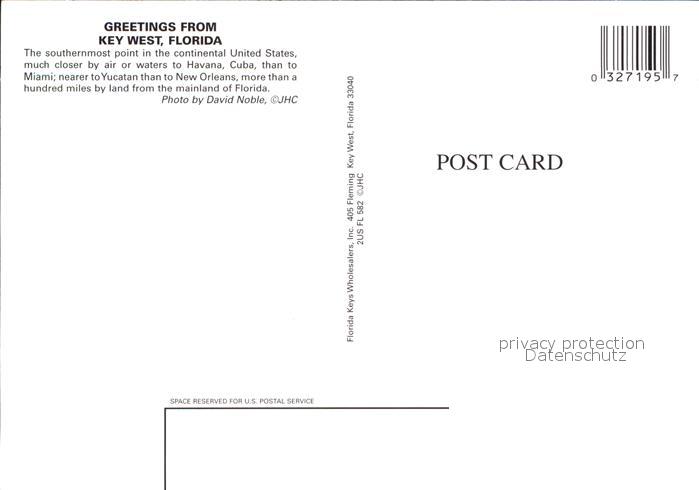 72565999 Key West The Southernmostpoint postalisch nicht gelaufen Erhaltung siehe scans [WerneD78] KatCode: 14140110000000