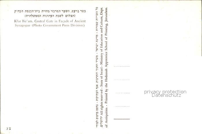 Kfar Bir am Central Gate in Facade of ancient Synagogue Ruinen Antike postalisch nicht gelaufen Erhaltung siehe scans