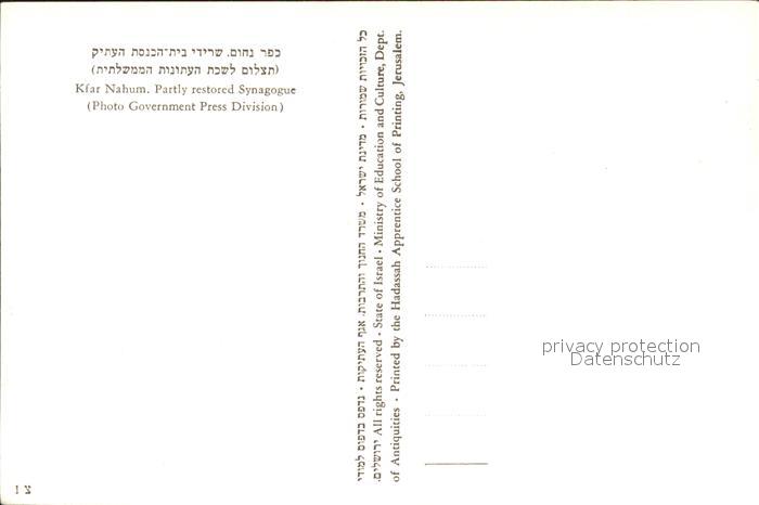 Kfar Nahum Partly restored Synagogue Ruinen Antike postalisch nicht gelaufen Erhaltung siehe scans