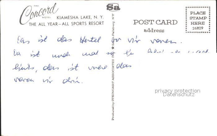 72021561 Kiamesha Lake Concord Hotel postalisch nicht gelaufen Erhaltung siehe scans KatCode: 14140340000000