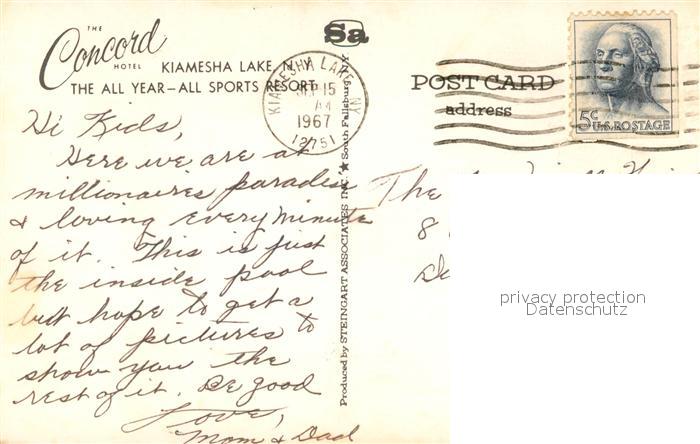73127753 old postcard Kiamesha Lake Hallenbad postalisch gelaufen Erhaltung siehe scans [KathaD81] KatCode: 14140340000000