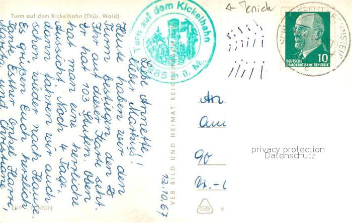 72962036 alte Postkarte Kickelhahn Turm postalisch gelaufen Erhaltung siehe scans [LiesaD40] KatCode: 11110016070029