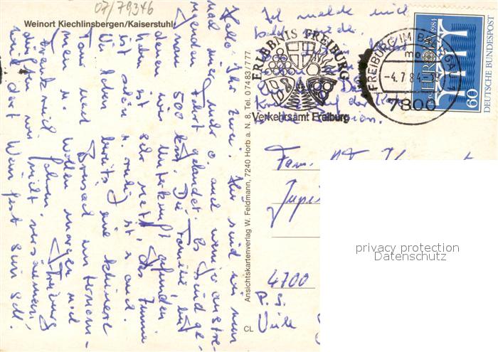 73647333 alte Postkarte Kiechlinsbergen Fliegeraufnahme mit Kaiserstuhl postalisch gelaufen Erhaltung siehe scans [WerneD78] KatCode: 11110008316012
