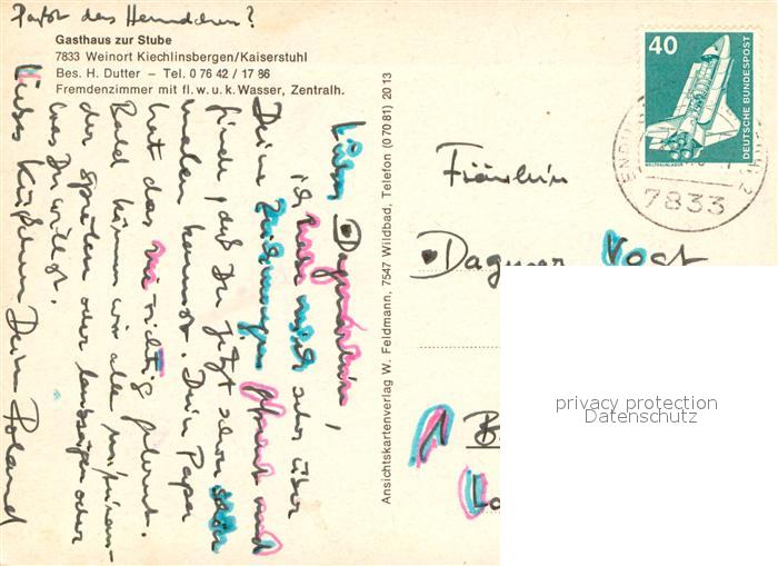 73641971 alte Postkarte Kiechlinsbergen Gasthaus zur Stube postalisch gelaufen Erhaltung siehe scans [WerneD78] KatCode: 11110008316012