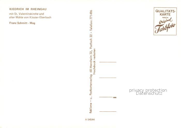 73256516 Kiedrich Ansicht mit St Valentinskirche Alte Muehle Kloster Eberbach Kuenstlerkarte postalisch nicht gelaufen Erhaltung siehe scans [FriedD77] KatCode: 11110006439009