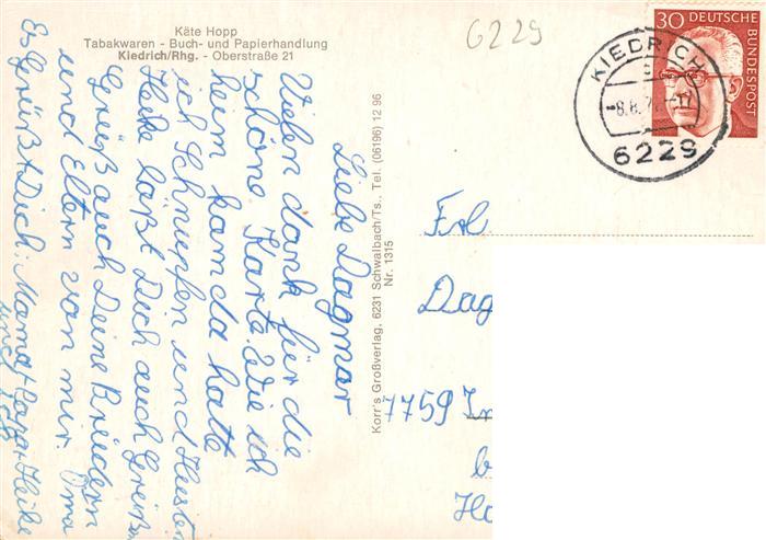 73935890 alte Postkarte Kiedrich Burg Scharfenstein Ortsansicht Ferienheim Wallfahrtskirche postalisch gelaufen Erhaltung siehe scans [WerneD78] KatCode: 11110006439009