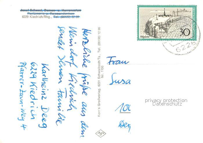 73124676 alte Postkarte Kiedrich Burgruine Scharfenstein Rheintal Kloster Eberbach Pforte Ferienheim St Valentinus Kirche postalisch gelaufen Erhaltung siehe scans [FriedD77] KatCode: 11110006439009