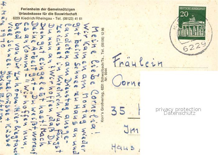 73101611 alte Postkarte Kiedrich Ferienheim der Gem Urlaubskasse fuer die Bauwirtschaft Fliegeraufnahme postalisch gelaufen Erhaltung siehe scans [WerneD78] KatCode: 11110006439009