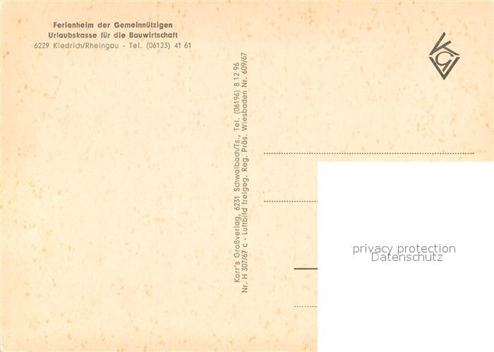 73721740 Kiedrich Ferienheim der Gemeinnuetzigen Urlaubskasse der Bauwirtschaft Fliegeraufnahme postalisch nicht gelaufen Erhaltung siehe scans [WerneD78] KatCode: 11110006439009