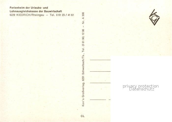 73211589 Kiedrich Ferienheim der Urlaubs- und Lohnausgleichskasse der Bauwirtschaft postalisch nicht gelaufen Erhaltung siehe scans [PaolaD17] KatCode: 11110006439009
